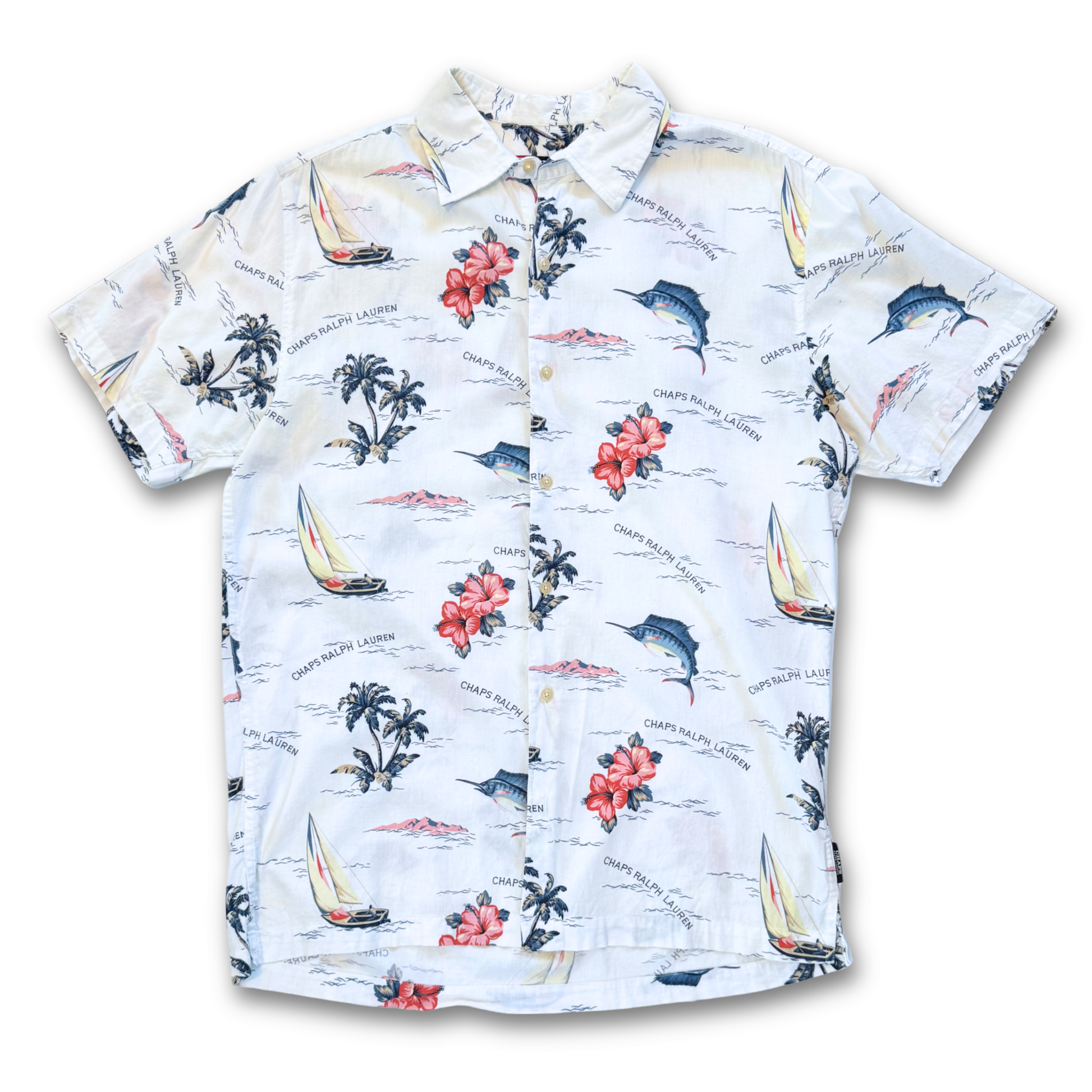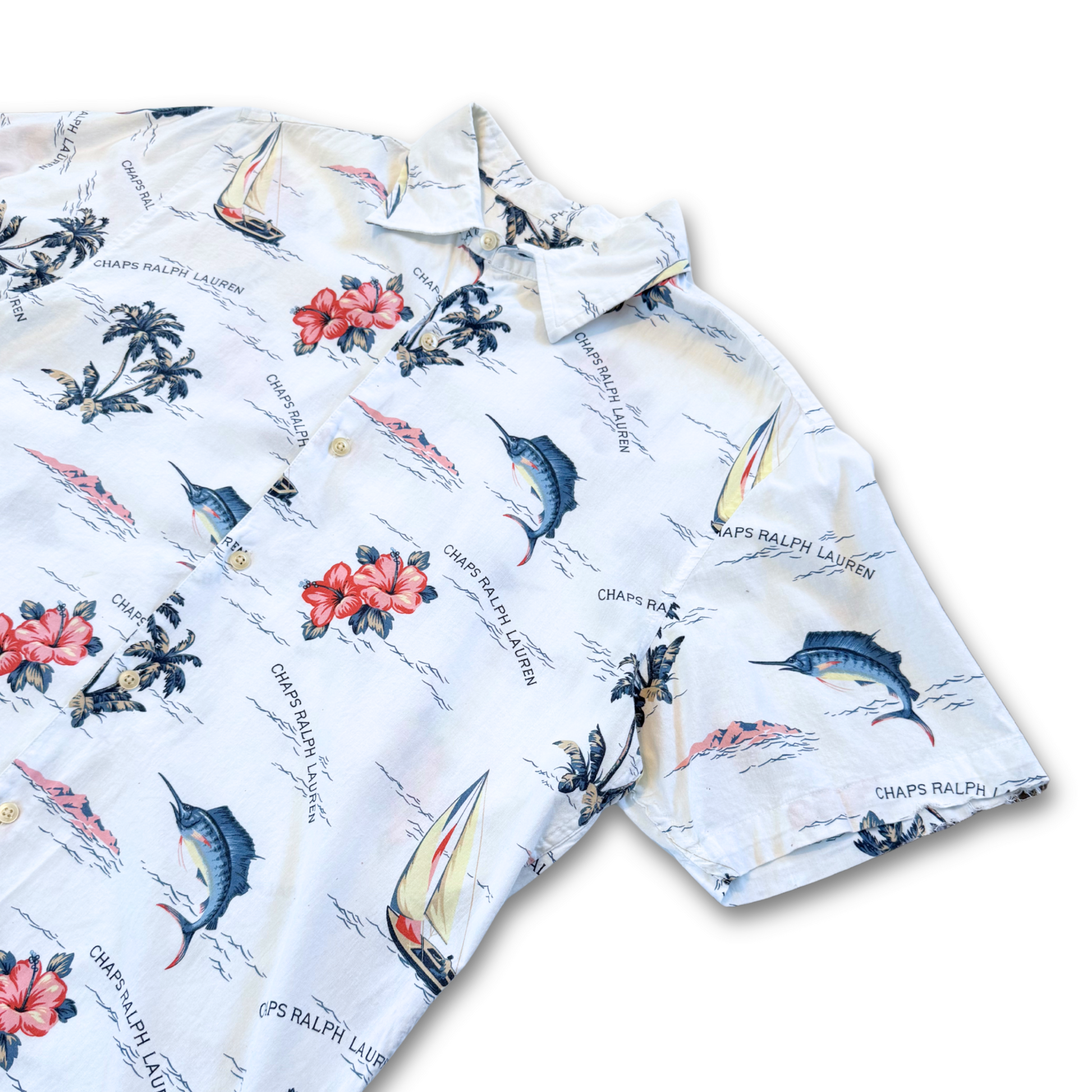 CHAPS RALPH LAUREN HAWAIIAN BUTTON UP SHIRT (M)