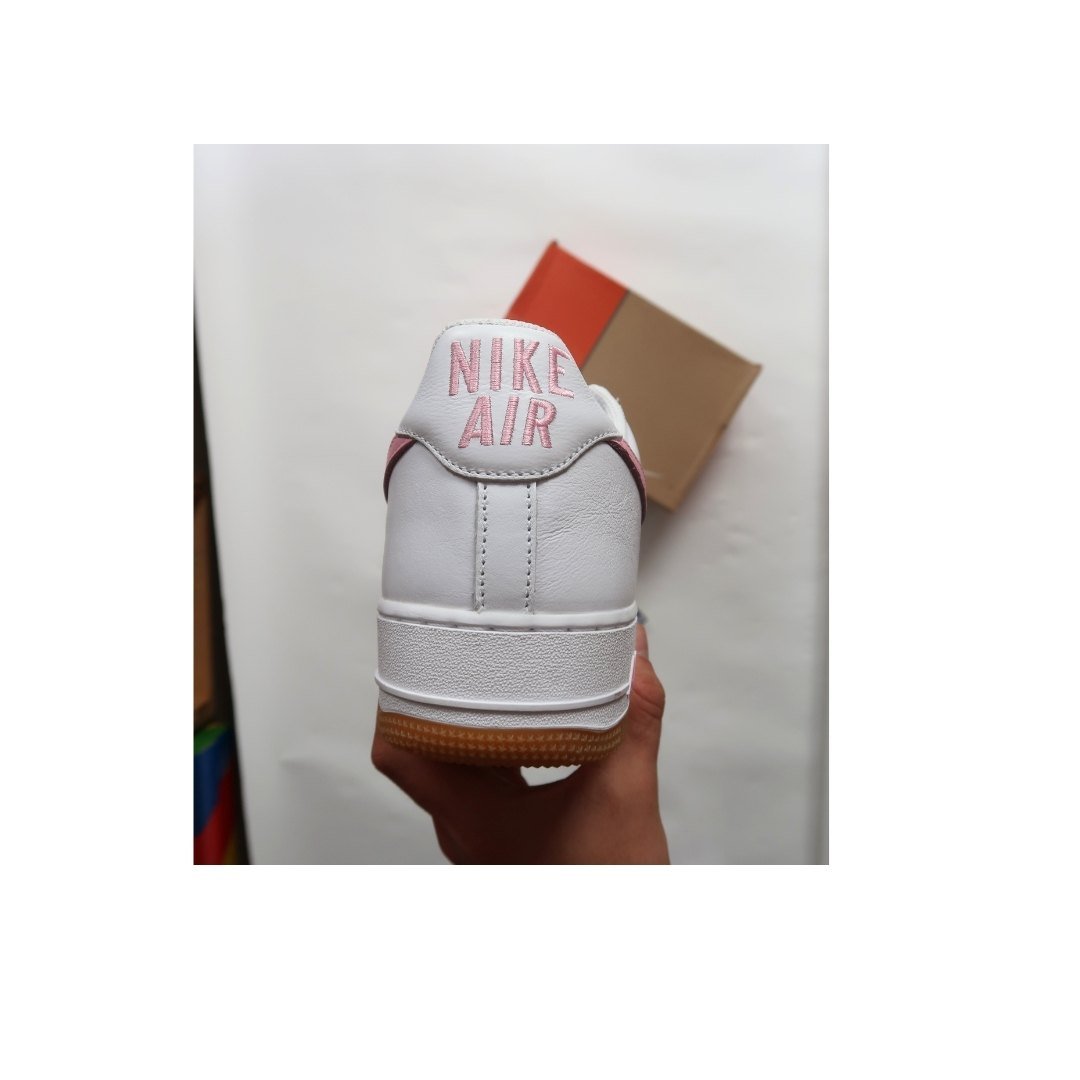 The Nike Air Force 1 Low ‘White Pink’ is taken from the ‘Color of the Month’ series, named for a rollout strategy undertaken by a select group of Baltimore retailers in 1984. They released their own custom AF1 colorways on a monthly basis, stoking demand for the hoops shoe and effectively saving it from extinction. This pair spotlights the silhouette’s timeless lines with a white leather upper and contrasting pink Swoosh. The pastel hue is repeated on Nike branding hits on the woven tongue tag and heel tab. Underfoot, a tacky gum rubber outsole features a traction pattern designed for pivoting on the hardwood.